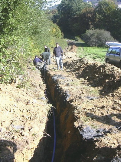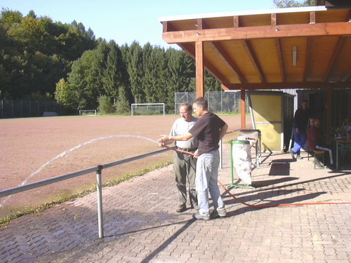 Am Samstag dem 22. September 2007 trafen sich viele fleißige Helfer um Wasser und Strom vom Friedhof zum Sportlerhäuschen zu verlegen. Einige Vorarbeiten wurden schon eine Woche vorher, bzw. am Freitag dem 21.9. geleistet.